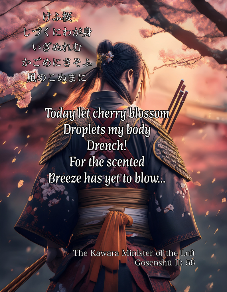 Both Left and Right are set in a traveller’s lodge in Sesshū province, but the Left appears to lack configuration and conception, it has long been said that using four of the character in a poem in a poetry match is a fault, but it does not sound to me as if the four uses of no here are a particular problem. With that being said, starting with ‘dozing on my travels’ [tabine ni wa]and then having ‘a shower by the eaves’ [shigure ni wa] uses wa twice and this seems to sound a bit discordant. The Right, while it refers to the same sort of shower from a cloudless sky, starts with ‘during a shower’ and follows this with ‘will anything drip through?’, which seems to sound a bit contradictory. I can’t help but feel it would have been better had it been ‘even though it showers’ and then had ‘will anything’. However, both poems are about reed roofed huts during a shower and it really is difficult to distinguish between them. Thus, I make this a tie.